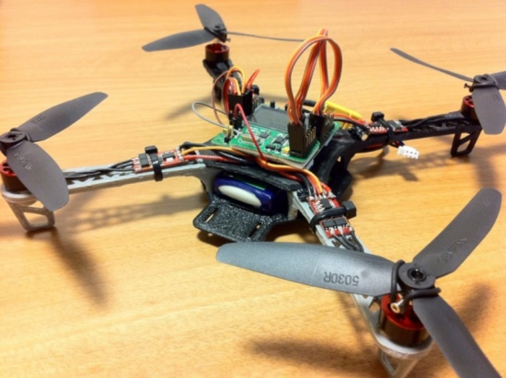 This 3D printed quadcopter drone as designed by Yuki Ogasawara and Ryo Kumeda. The idea of the project emerged after the earthquake that touched Japan in 2011.
