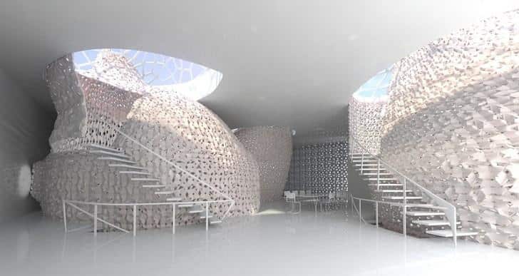 The Dutch architect Yanyap Reussenaars, who developed the project of the Landscape House, is seriously interested in the developments of his Italian colleague. This house is a huge Mobius strip, which, in fact, should be printed and then reinforced with metal and concrete inserts.