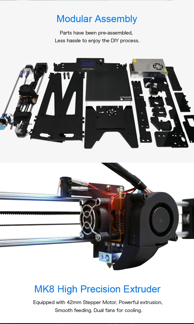 - All-metal base and frame make the 3D printing machine strong and durable for long-term use.