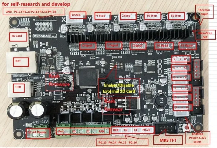 GITAt the link to the github, those who wish will find all the sources: gerber files, a BOM list with approximate prices and links to all components, firmware, instructions for adding their board to Marlin (for those who want to assemble from the original sources themselves), instructions for adding its own thermistors (the board has a feature - a pull-up on the analog input of the ADC 1kOhm instead of the usual 4.7kOhm, this gives more ADC readings per degree at high temperatures).