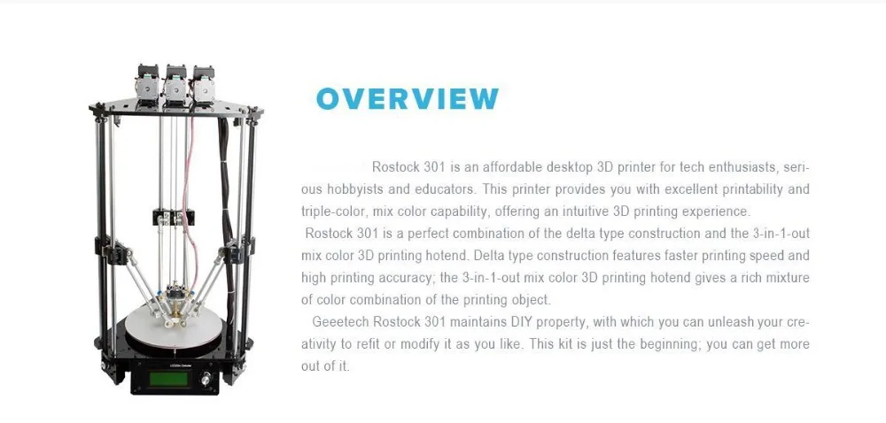 This 3 in 1 from Hotend is designed for use with Kossel or Rostock printers.