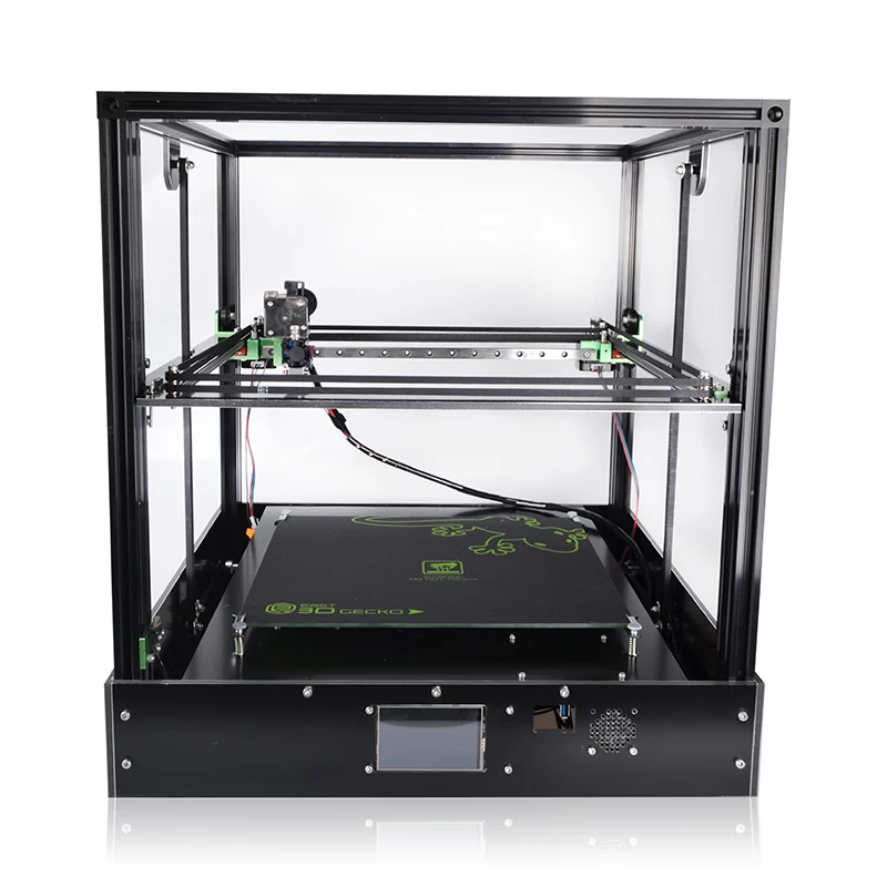 To contain the heat, tip two is an enclosure for the printer. Nothing revolutionary here — [Marco] just built a quick cover from aluminum profiles and acrylic.