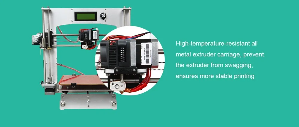 In consideration of your need to upgrade the extruder in the future, we use reserved design on this printer and you can upgrade any part. This kind of design provides you with more choices of revamping this printer and more ways to use it.