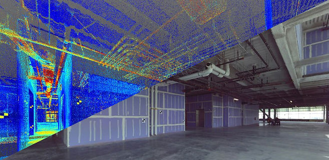 The point cloud is colored depending on the degree of intensity and after scanning looks like a three-dimensional digital photo. Most modern models of laser scanners have a built-in video or photo camera, so that the point cloud can also be painted in real colors.