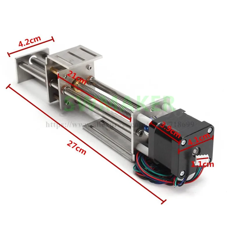 Standard stepper motors are rated for 4V, 8V, or 12V power supplies. The most common NEMA 17 motors are 1.7" x 1.7" (43.2 x 43.2 mm). Smaller motors (eg NEMA 14) may also be used. To convert the rotational motion of the rotor into translational, a system of pulleys driven by toothed belts or threaded shafts is used.