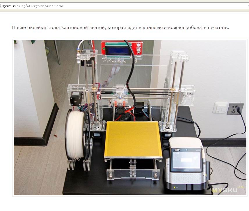 The kit also comes with yellow masking tape. The manufacturer assumes that we will print directly on top of aluminum, on which we will stick this very adhesive tape. Tried maybe, but not worth it. It is better to immediately think about installing glass, preferably heat-resistant. So does a mirror. Required dimensions ~21*21cm. This device has a slightly larger table than the standard 20 * 20, but this does not affect the working area.