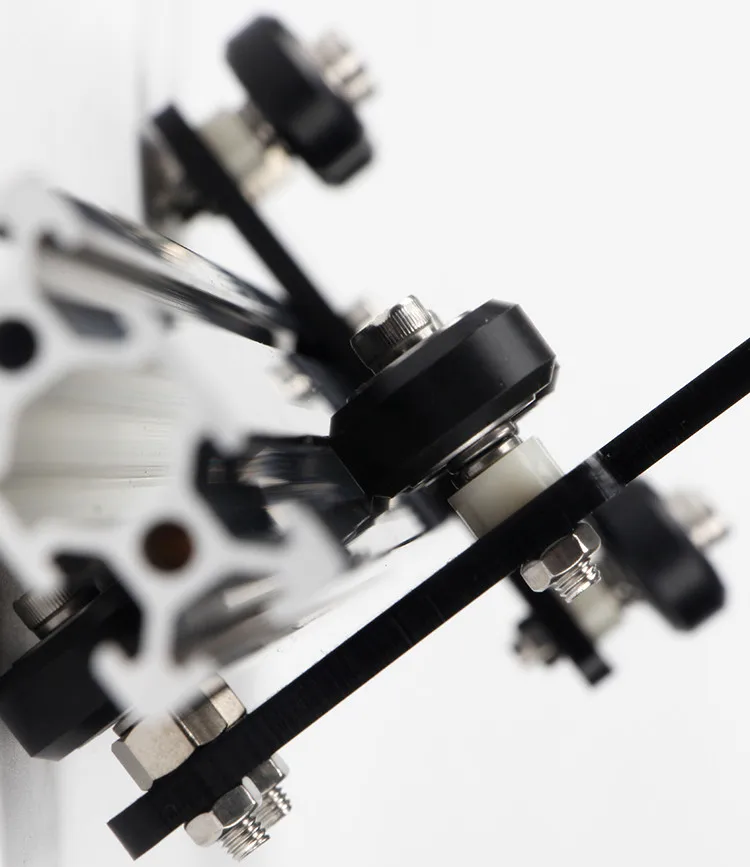 This kit is made of durable aluminum to replace the original acrylic bottom brackets and connectors. Aluminum parts ensure the rigidity of the frame connection and the strength of the structure as a whole. As a result, the printer will not require frequent calibration and will delight owners with stable and accurate printing for a long time. The modernized kit differs from the standard one by the presence of X and Y belt tensioners, as well as the ability to install all axles both on rollers and on rails.