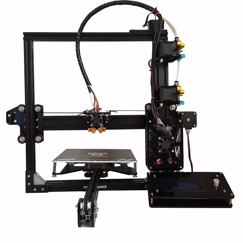 Dual extruder 3D printers have two print heads or nozzles instead of one print head like standard FDM 3D printers. Dual printing frees you from the limitations of using only one type of 3D printer filament and allows you to create multicolored parts with ease.