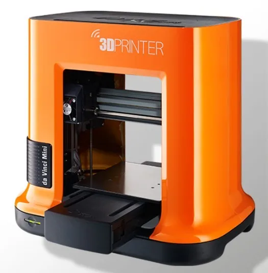 With its bright orange plastic case, the XYZ da Vinci Mini certainly stands out from the crowd of me-too black printers. (If you really want to stand out, XYZ offers a $249 education-focused version called the da Vinci minimarket that is made of multicolored plastic, like the illegitimate offspring of a Lego factory and a Terminator.)